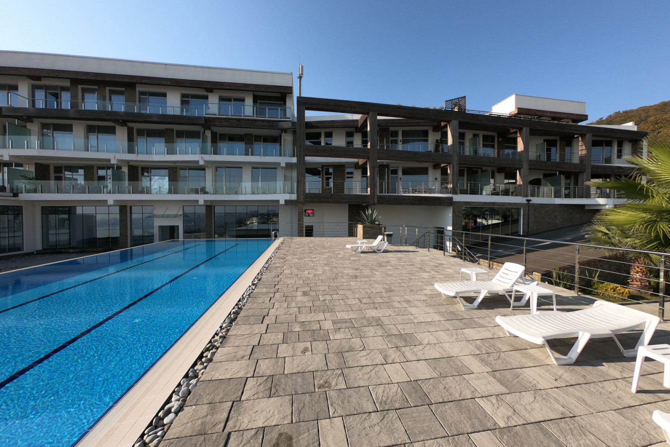 Современная архитектурная концепция с использованием премиальных материалов. Каждая деталь продумана для создания атмосферы курортного уюта и городского комфорта.