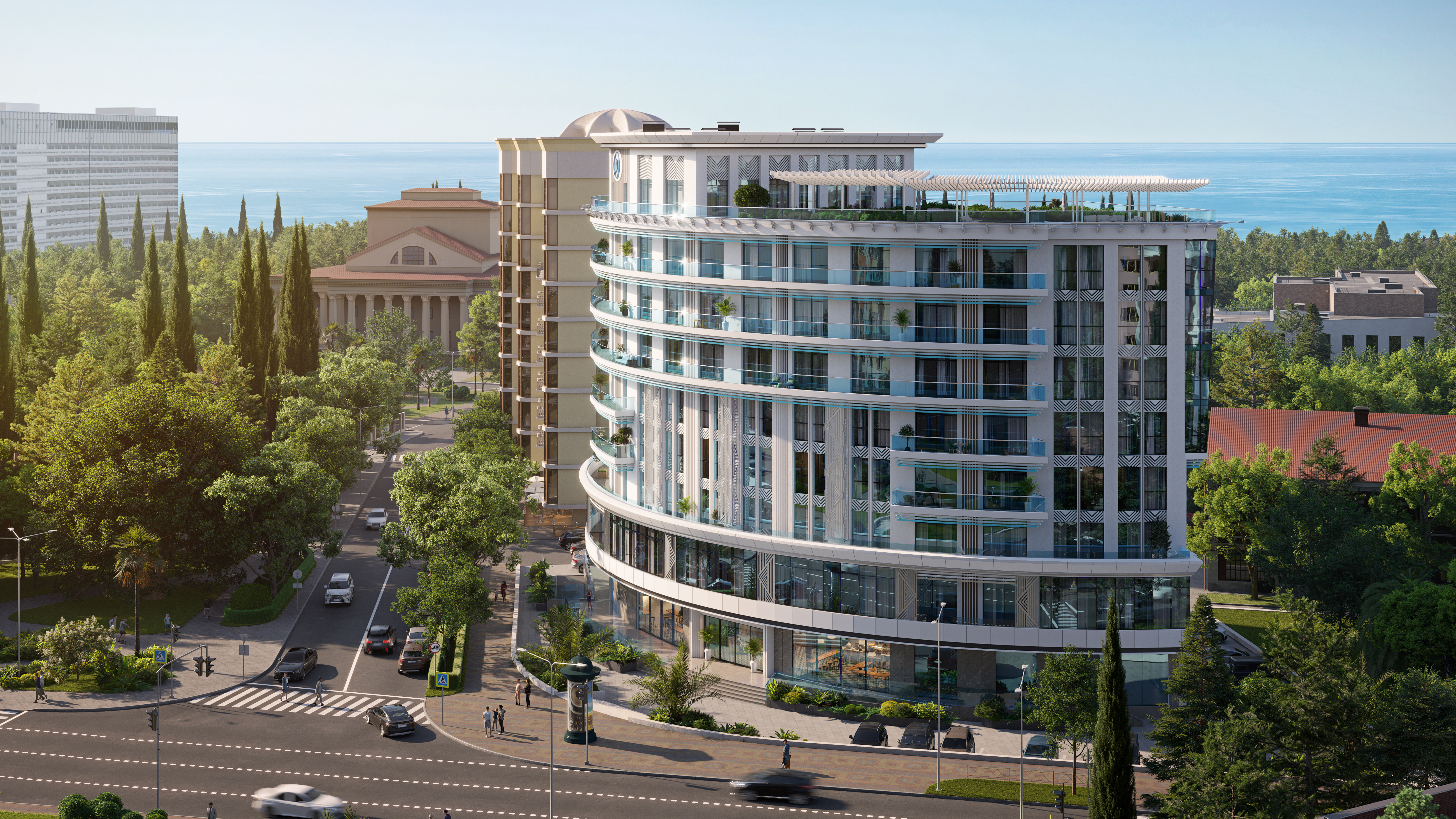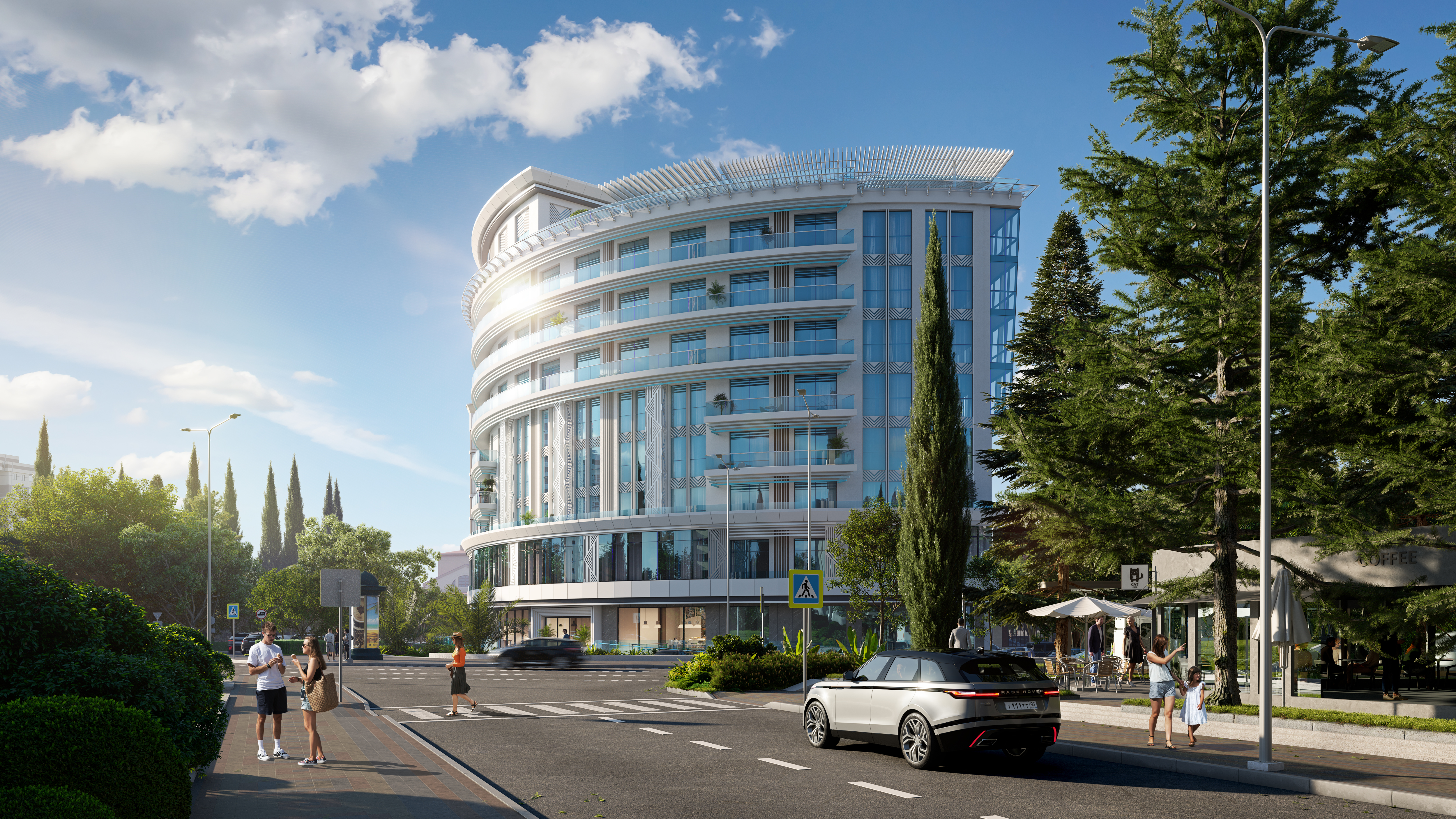 Современная архитектурная концепция с использованием премиальных материалов. Каждая деталь продумана для создания атмосферы курортного уюта и городского комфорта.