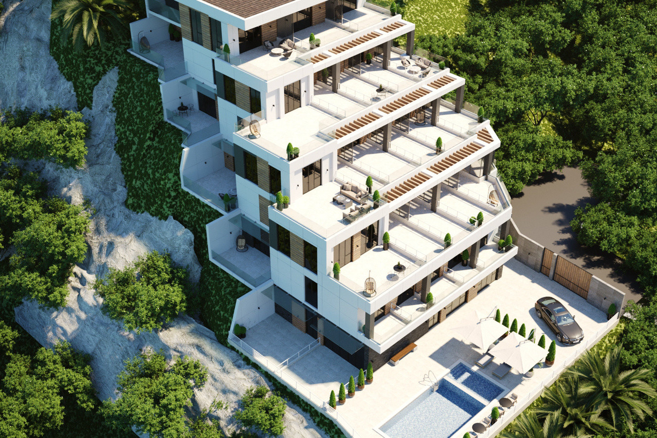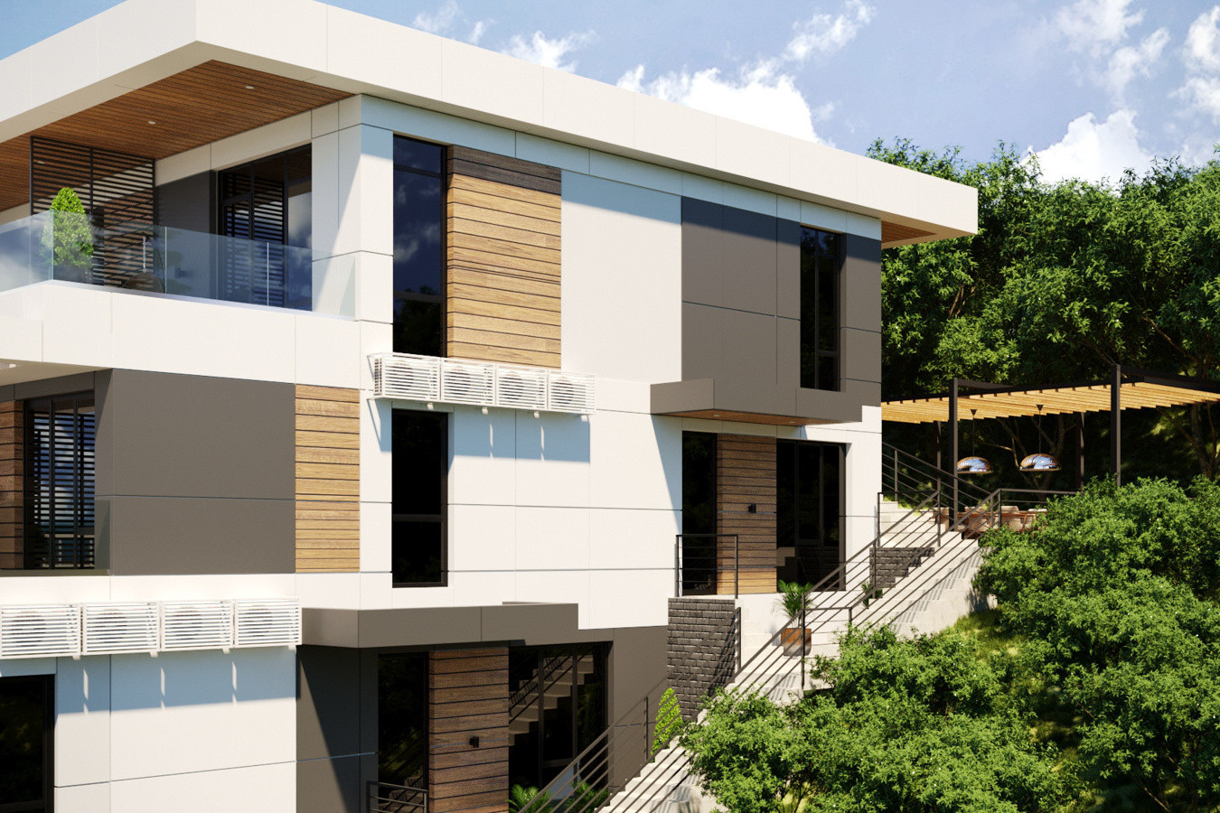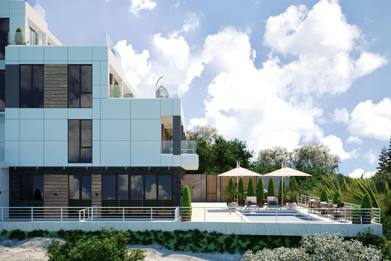 Современная архитектурная концепция с использованием премиальных материалов. Каждая деталь продумана для создания атмосферы курортного уюта и городского комфорта.