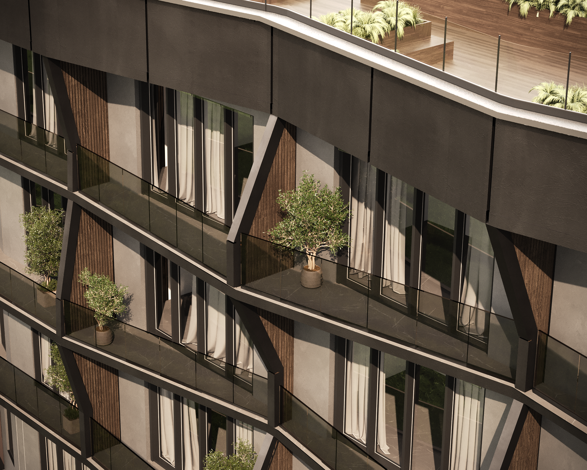 Современная архитектурная концепция с использованием премиальных материалов. Каждая деталь продумана для создания атмосферы курортного уюта и городского комфорта.