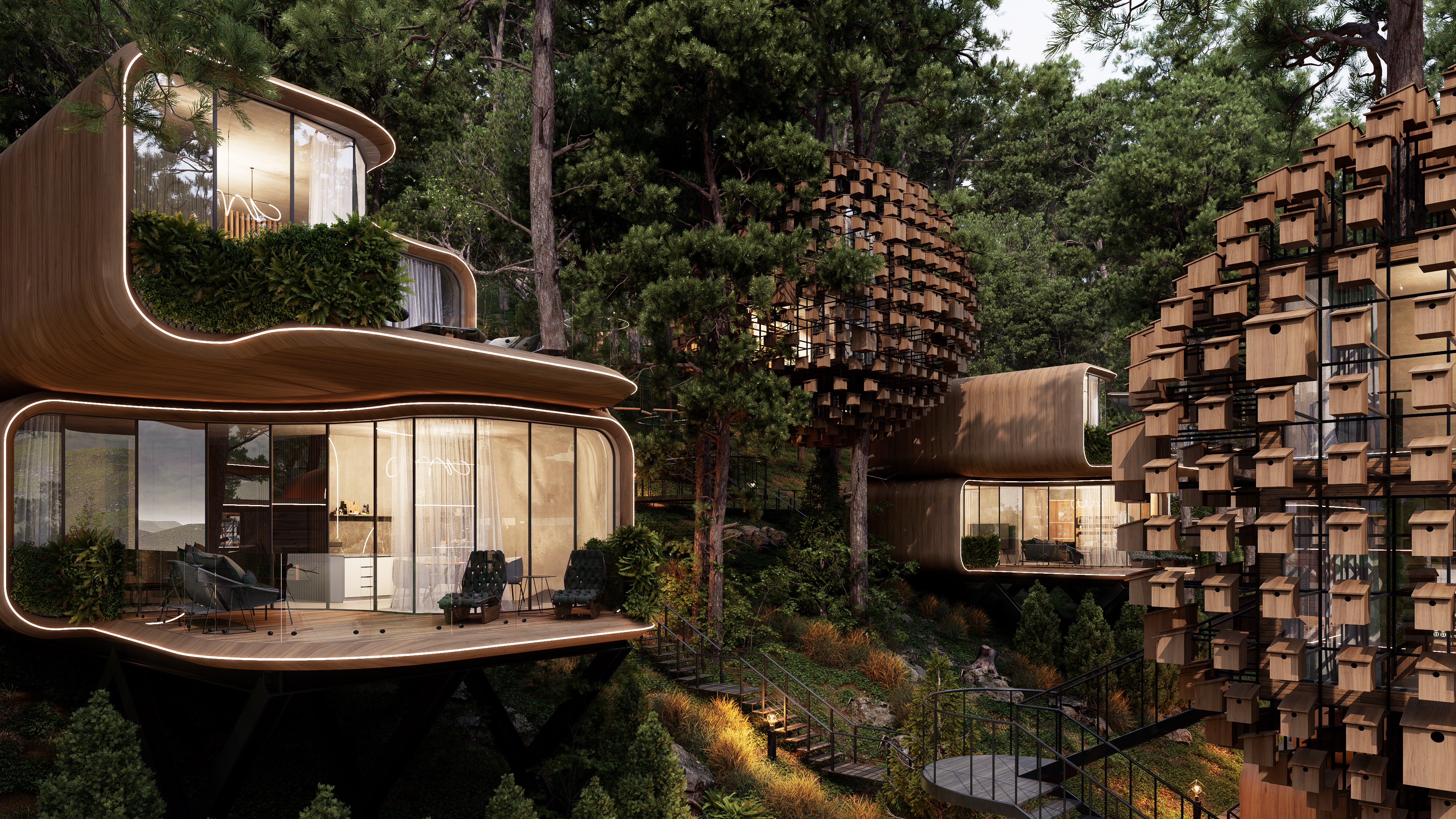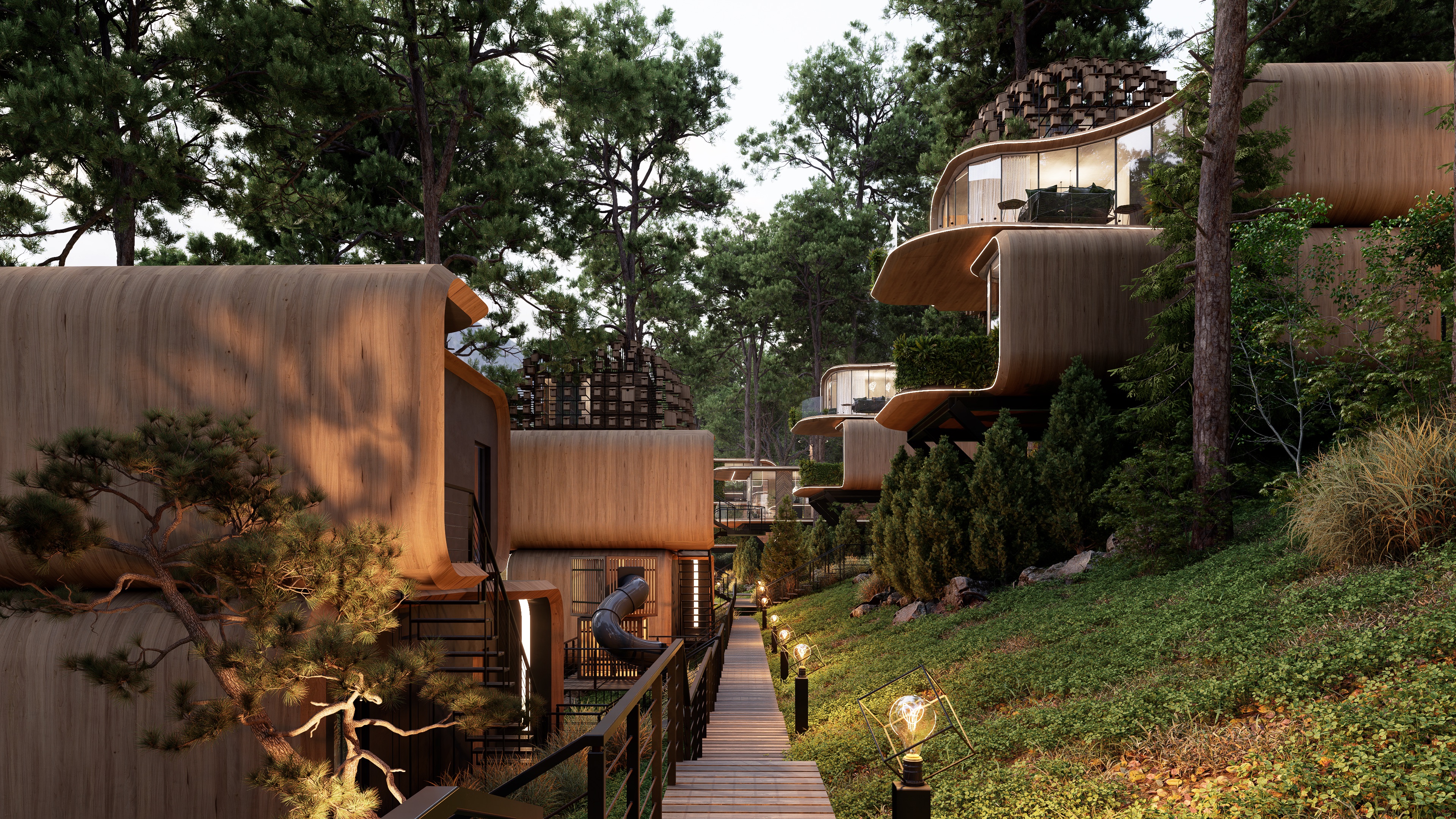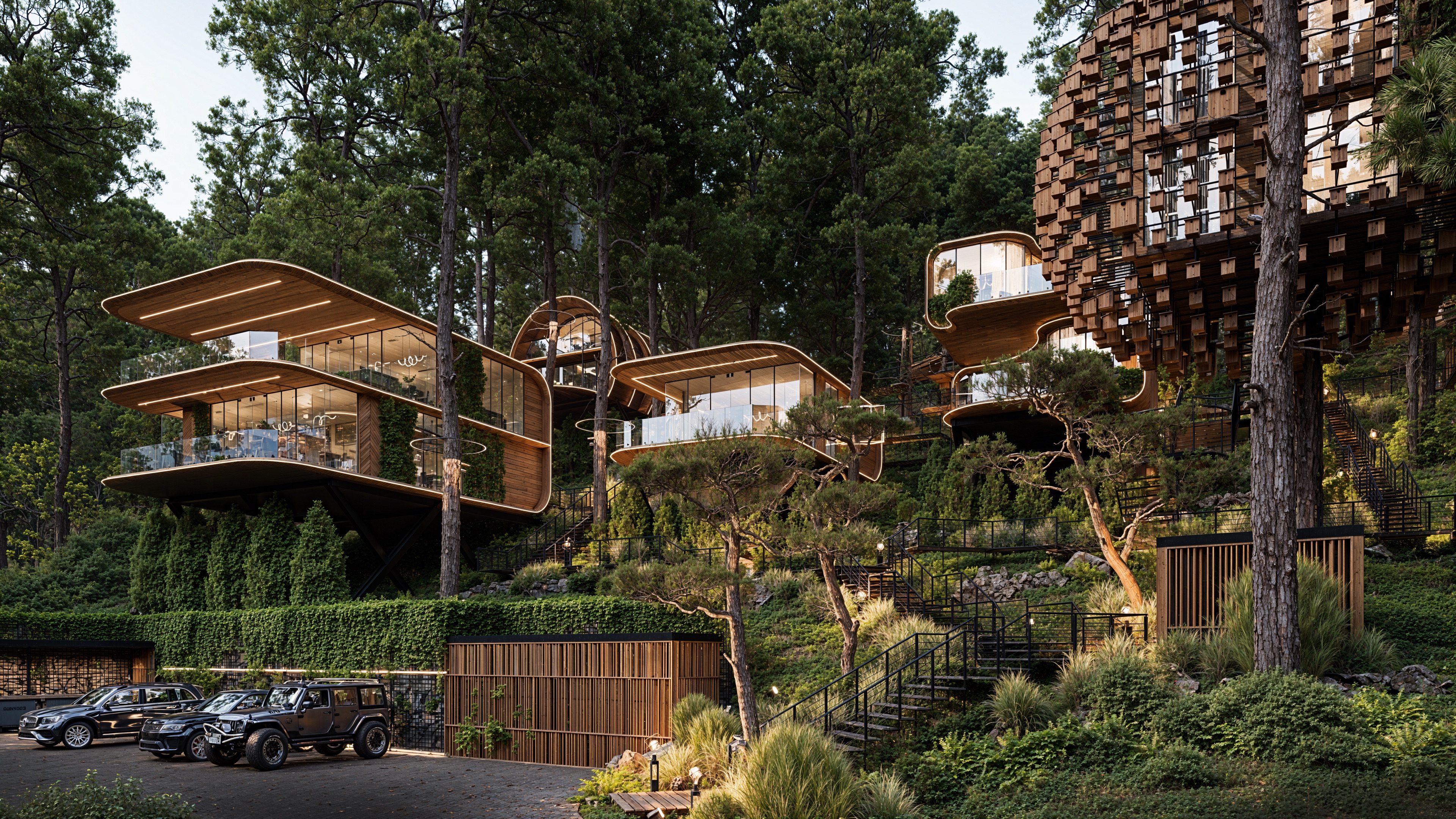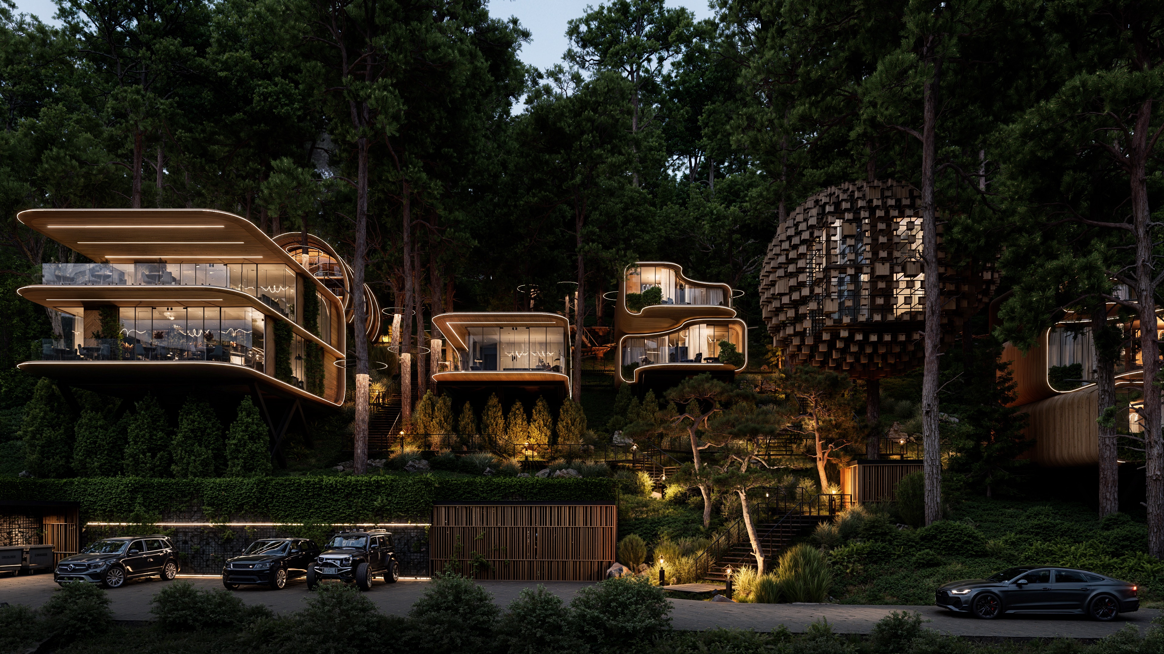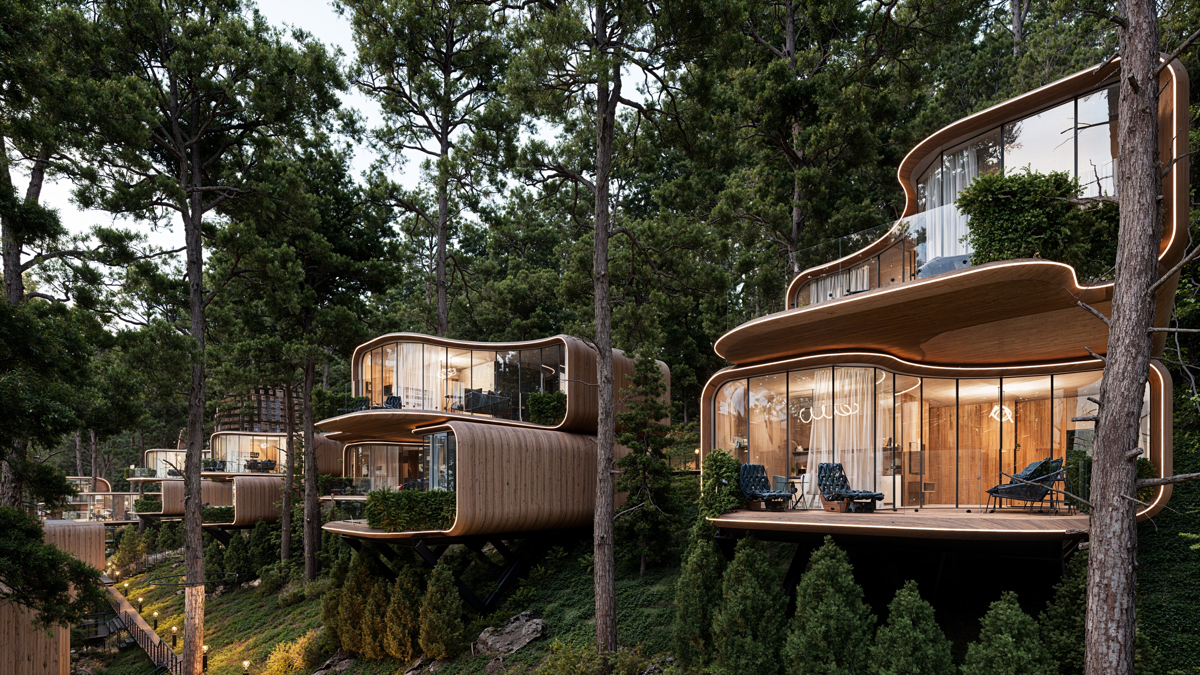 Современная архитектурная концепция с использованием премиальных материалов. Каждая деталь продумана для создания атмосферы курортного уюта и городского комфорта.