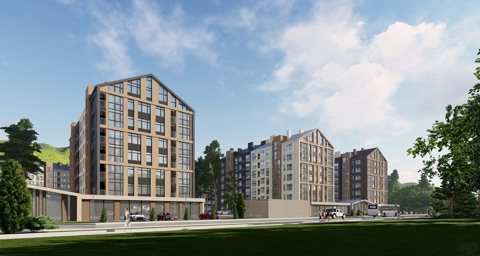 Современная архитектурная концепция с использованием премиальных материалов. Каждая деталь продумана для создания атмосферы курортного уюта и городского комфорта.